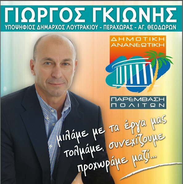 Στις εκλογές του Μαΐου επιλέγουμε τη νέα δημοτική αρχή.Αποφασίζουμε το μέλλον μας. Στη μάχη αυτή θα είμαστε παρόντες με όλες τις δυνάμεις μας.Στοχεύουμε ένα Δήμο-πρότυπο, το Δήμο που αξίζουμε. Την Πέμπτη 3 Απριλίου στο Λουτράκι, στο ξενοδοχείο "Μαντάς" στις 8.30 μ.μ. ανακοινώνουμε τις βασικές θέσεις της παράταξής μας για την επόμενη μέρα στον τόπο μας. Σας προσκαλούμε όλους να είστε εκεί. Αδέσμευτη Δημοτική Κίνηση Παύλος Γ. Παύλου |